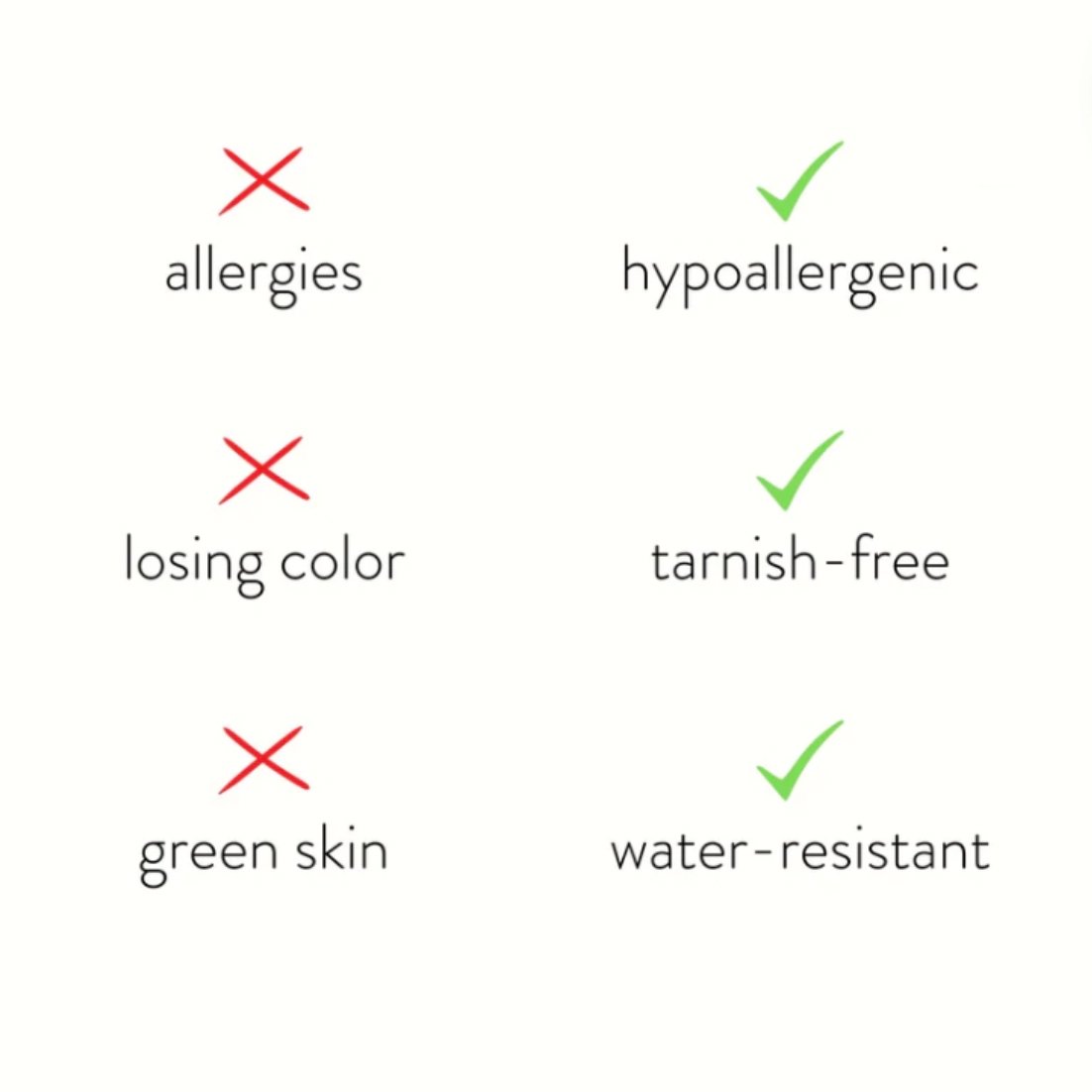 Made from waterproof stainless steel, you will never have to worry about your jewelry fading or tarnishing again.